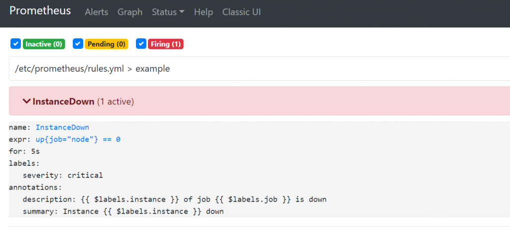 - alert: InstanceDown