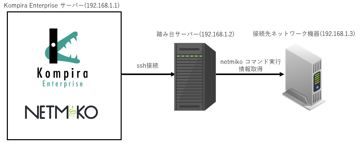 $ su kompira -c "ssh -i /home/kompira/.ssh/kompira.key root@192.168.1.2"